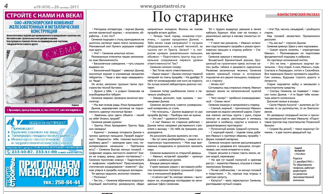 Газета "Строитель" 410 от 20.09.2011 г. Федин А.А.