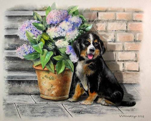 Иллюстрации к "Щенок и гортензия"